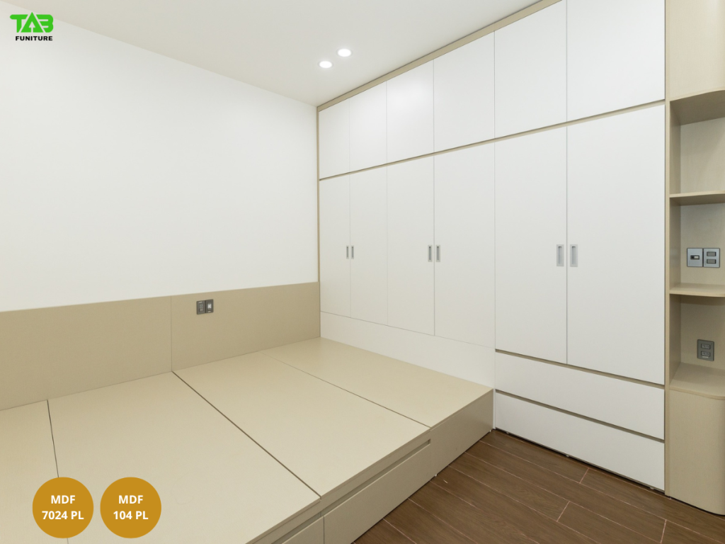 Tất cả đều được sản xuất bằng MDF Vanachai chất lượng cao, giúp không gian liền mạch, thẩm mỹ và bền đẹp.